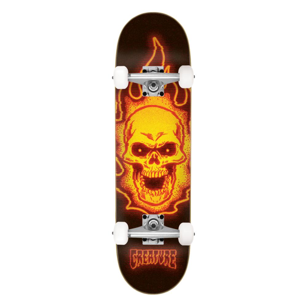 skeittilauta (complete) Creature Complete Bonehead Glitch Orange/Multi 8.51 on valmislauta noin 8,5″ leveällä deckillä. Leveys tuo vakaata tukea käännöksiin ja grindeihin, joten se toimii hyvin katu- ja parkkiskeittaukseen, kun haluat vähän jämäkämmän pohjan jalkaan.