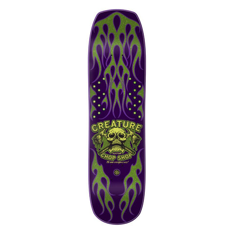 Creature Chop Shop Flame 8.5" skeittilauta on team-malli Creature Skateboardsin "Chop Shop" -sarjasta. Sarja yhdistää custom-autojen tyyliä (liekit, pinstripet) Creature'n synkkään fiend-vibaan – tässä 8.5-tuuman versiossa on flame-teemainen grafiikka tulisilla liekeillä ja innovatiiviset 'Mano Grips' -erikoisgripit reunoilla.