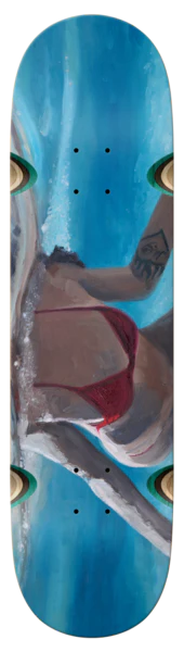 Krooked Skateboards Lee Smith Guest Artist Wheel Wells 8.5" on dekki, joka tuo Lee Smithin taiteellista. Lee Smithin käsinmaalattu grafiikka – uimari punaisessa bikinissä ja MG-tatuoinnissa – antaa laudalle Krookedin klassisen, rentoa katufiilistä. 7-kerroksinen kanadalainen vaahtera pitää popin napakkana ja dekin kestävänä, kun vedät trikkejä spoteilla. Medium concave, ja wheel wells -muotoilu tekee matalamman ja ketterämmän katuun. Krookedin:n valikoimasta tämä on valinta skeittareille, jotka diggaa taiteellista meininkiä.