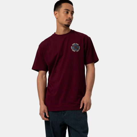 Tumman kirsikan sävyinen Pace Dressen Roses Evo -T-paita ammentaa Santa Cruzin perinteisestä tyylistä ja Dressenin tunnistettavasta visuaalisesta linjasta. Rinnan ja selän grafiikat tuovat paidalle persoonallista ilmettä ilman liiallista kikkailua.