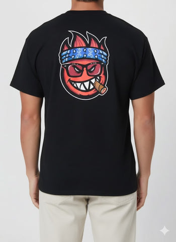 Thrasherin ja Spitfiren yhteinen T-paita, jossa Big Head Outline -grafiikka. Etupuolen painatus ja selän suurempi kuva tekevät paidasta näyttävän ilman liiallista kikkailua. Klassinen musta väri toimii kaikkien setuppien kanssa.